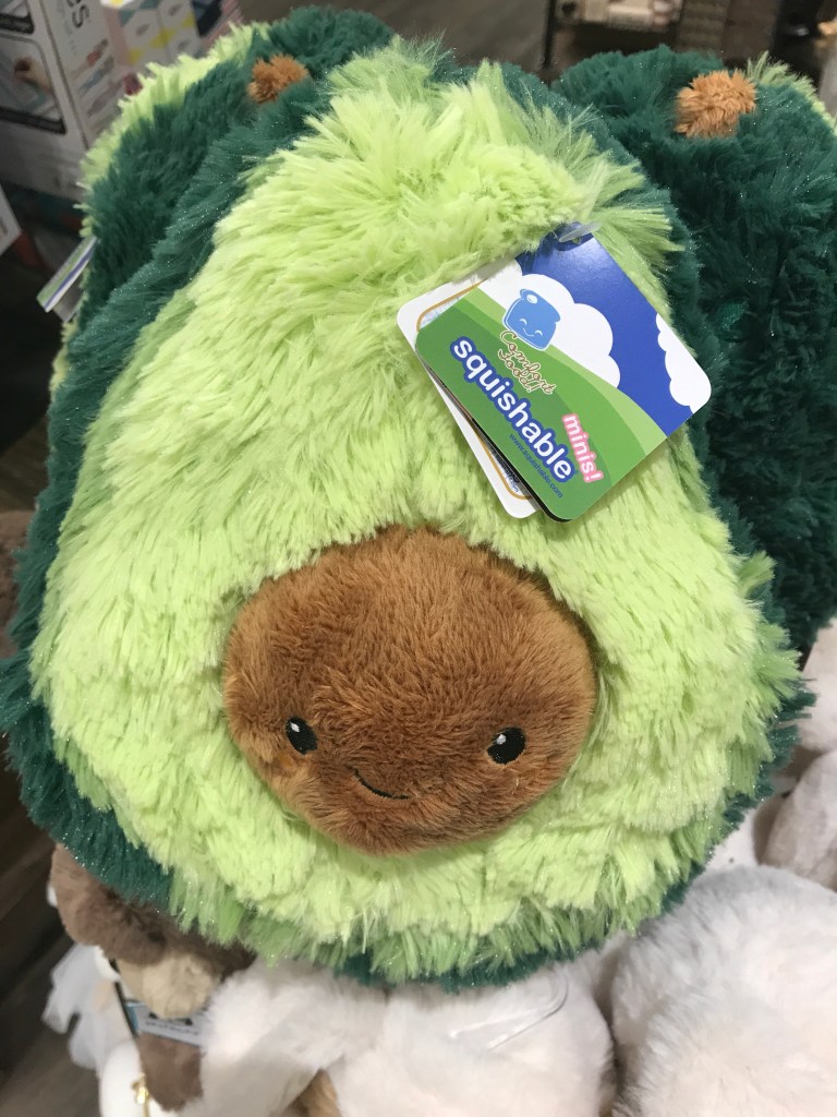 Among the stuffed animals in the bin at the gift shop, we now have a stuffed avocado with a rather creepy grin. It was confusing enough, veggie or fruit, now it is animal? Good luck next gen, we’re doing our best to confuse you!